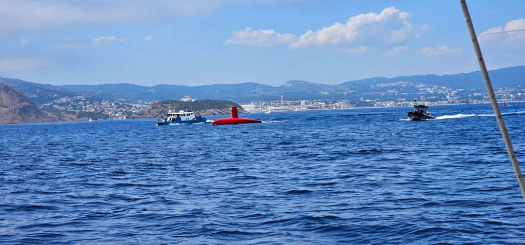 En passant devant la Ciotat, on a croisé le chemin d’un étrange navire suivi par son petit !!.