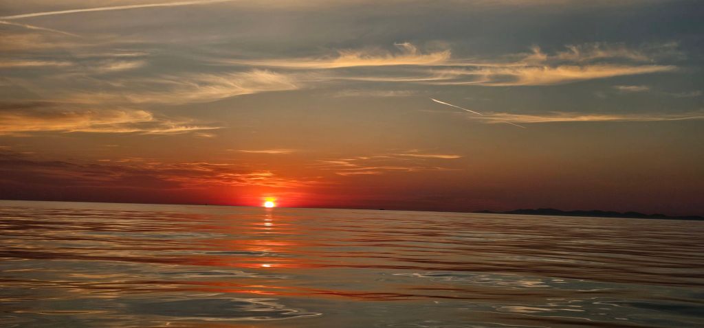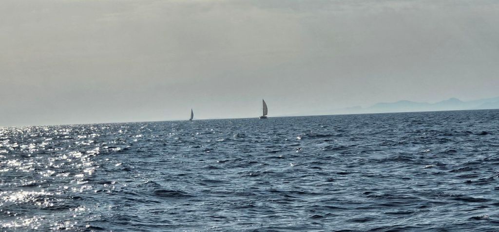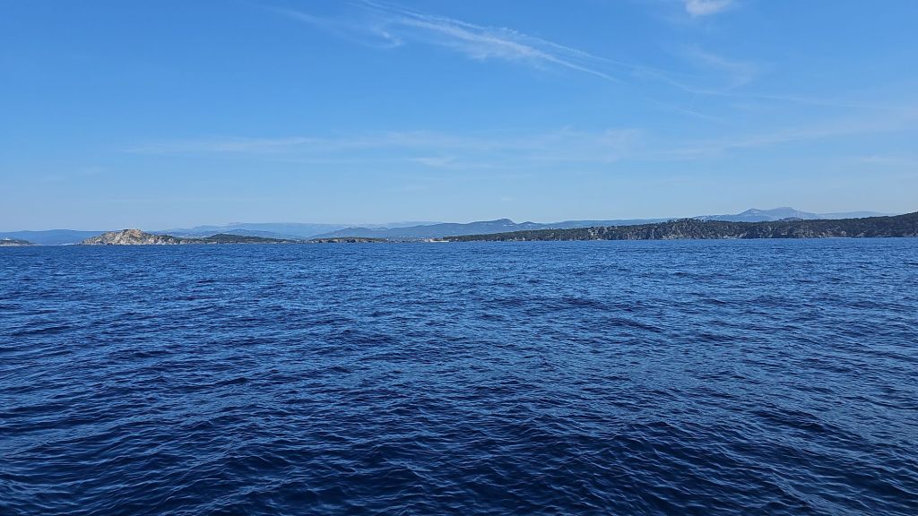 Départ des Embiez à 9h45. Sous voiles. Malheureusement vent plein Est, donc trop de bords carrés pour avancer dans le bonne direction donc … moteur à partir de 11h jusqu’à 15h45 avec un vent passé au Sud Ouest 6 Knots et forcissant jusqu’à 12 Knots. Fin de la période de vent à 20h30.