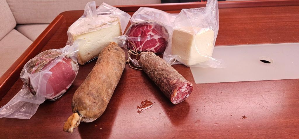 Heureusement on a trouvé un petit marché de producteurs locaux et on s’est vengés en utilisant nos derniers billets pour acheter du saucisson corse et un tomme chèvre/brebis à tomber !