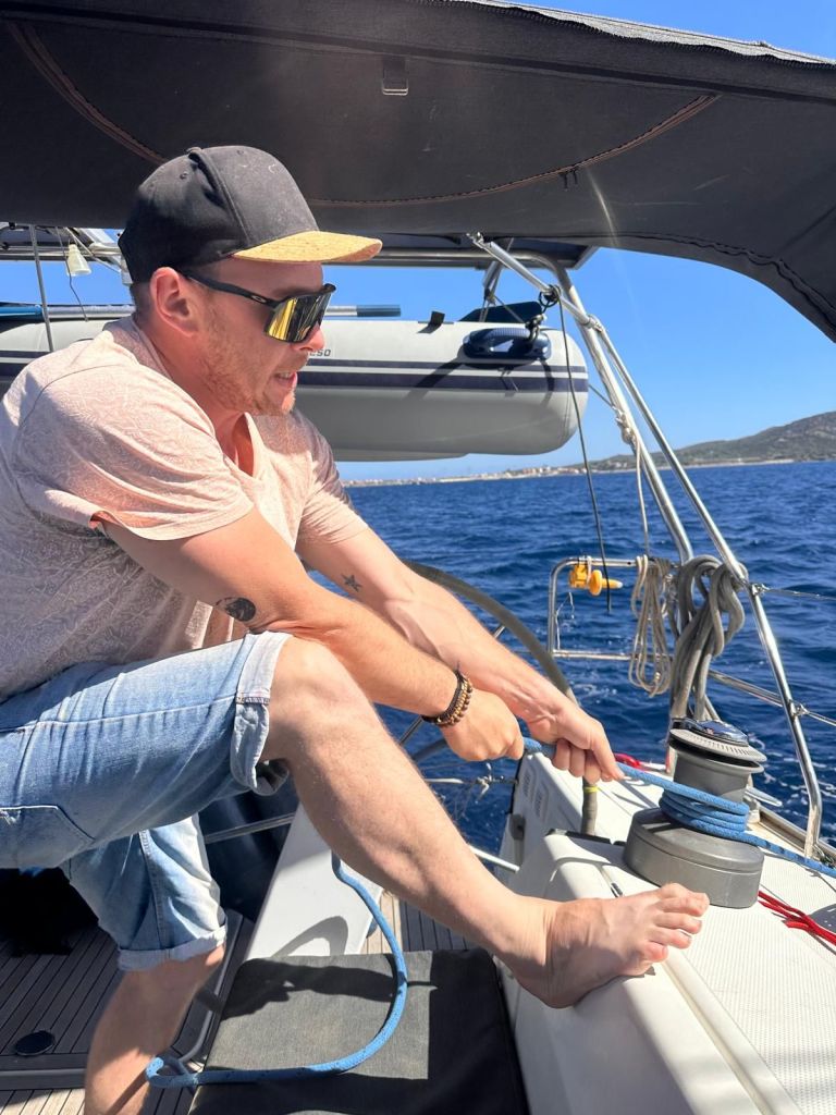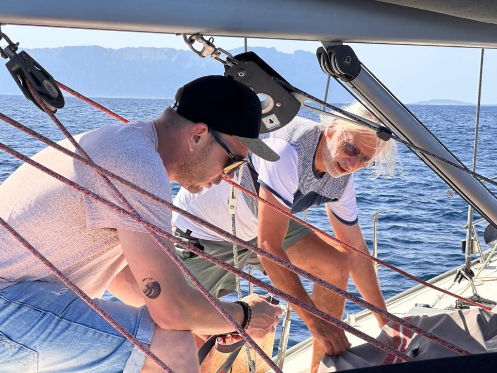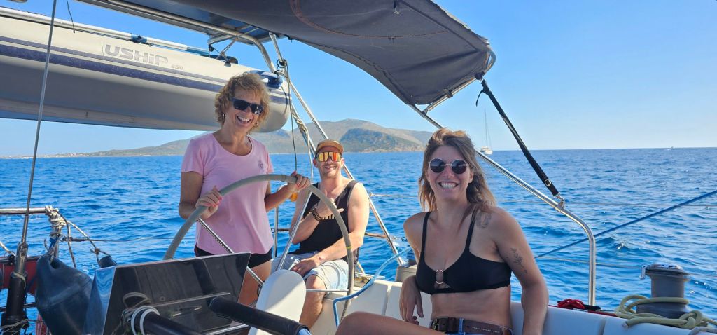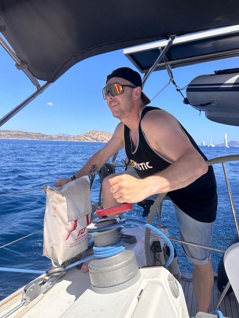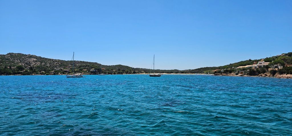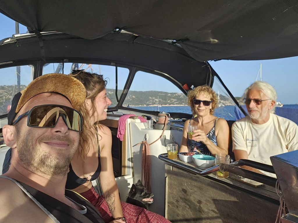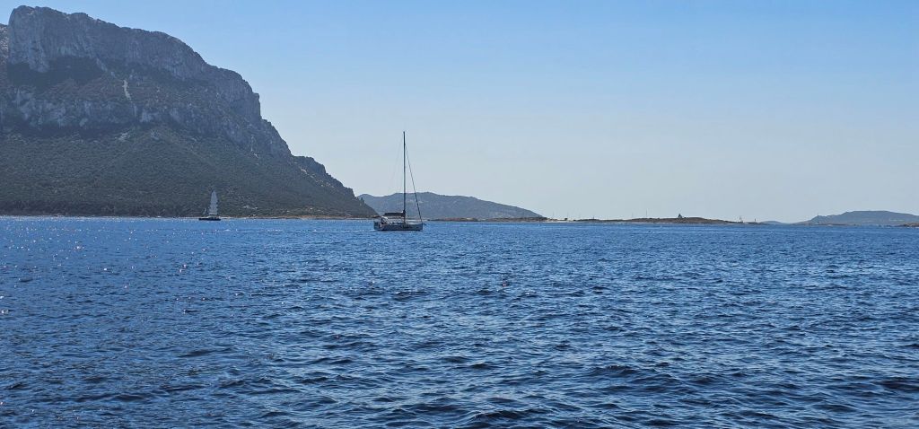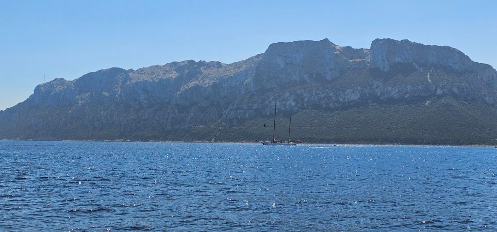 Après l’arrivée de notre équipage pour la semaine (Manue et Valérian), nous somme partis pour une petite navigation de 9 Mn vers le sud pour un mouillage dans la Cala Cirgolu.