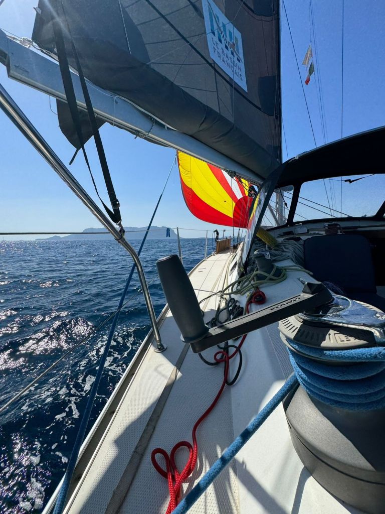 Cette navigation à vraiment été super sympa avec de belles accélérations et les autres voiliers rencontrés laissés sur place. Il faut dire qu’avec une voile d’avant de 145 m2, quand le vent monte, ça envoie du pâté.